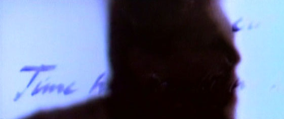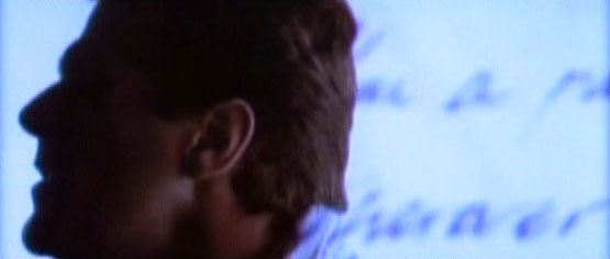 The lyrics behind him are brought into focus.